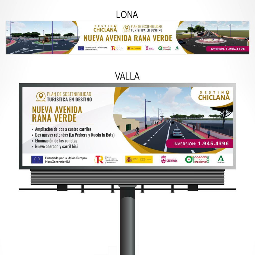 Valla anuncio nueva Avda. Rana Verde. Ayto. de Chiclana.