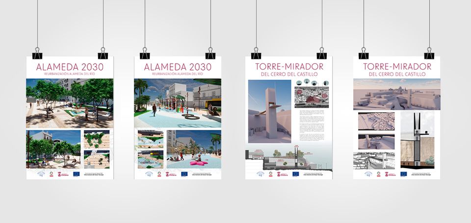 Paneles informativos sobre la nueva Alameda y Torre-mirador. Ayto de Chiclana.