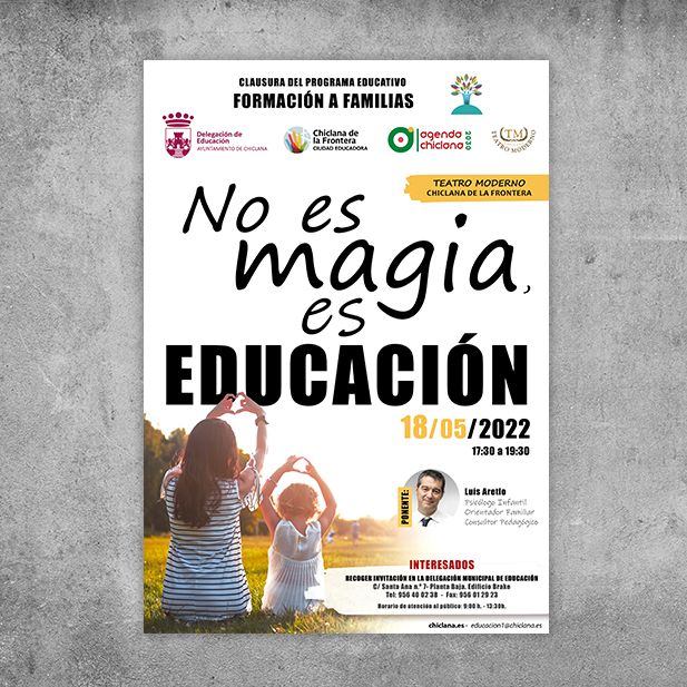 Cartel de formación a familias, No es magia es educación. Ayto de Chiclana.